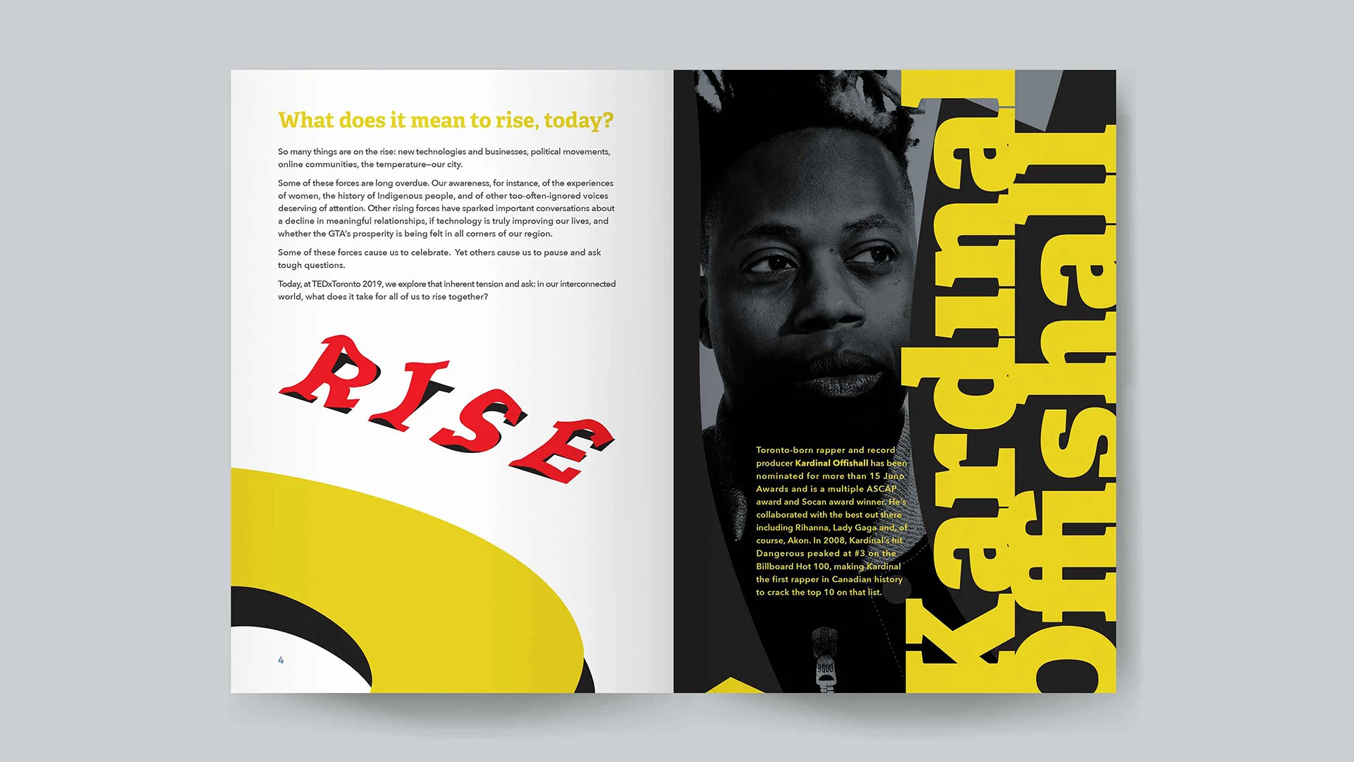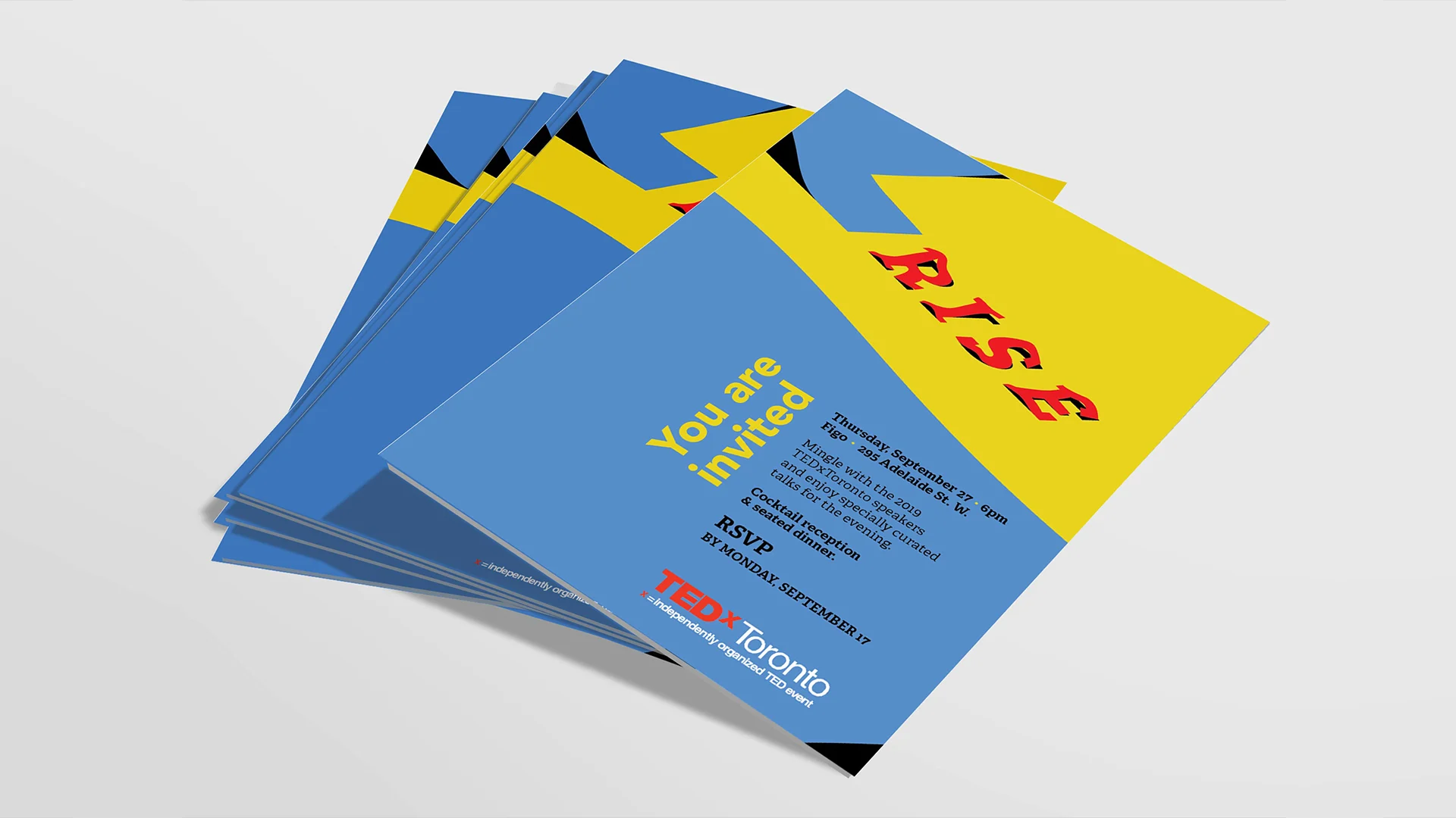 Full conference campaign and design for TEDxToronto, that included creative exploration and development of a visual identity that explored the theme: RISE.
